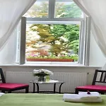 Cada um dos 16 quartos está mobilado com janelas a prova de som, assim como o ferro e tábua de passar, controle de temperatura. Eles são equipados com escrivaninha, e também incluem máquinas de café/chá. As casas de banho têm casa de banho separada e chuveiro, juntamente com secador de cabelo e touca de banho.